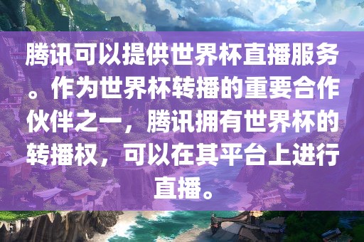 腾讯可以提供世界杯直播服务。作为世界杯转播的重要合作伙伴之一,腾讯拥有世界杯的转播权,可以在其平台上进行直播。