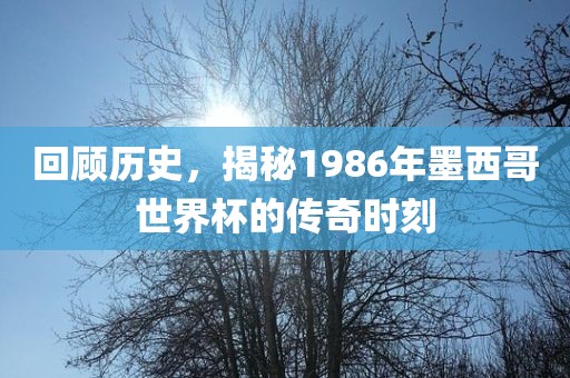 摘要:,,本文将回顾历史,揭示1986年墨西哥世界杯的传奇时刻。从激动人心的比赛瞬间到令人难忘的球员表现,我们将一起重温那些令人热血沸腾的时刻。这场世界杯足球赛充满了激情与荣耀,成为足球历史上的一部经典之作。本文旨在带领读者重温那段辉煌的历史。