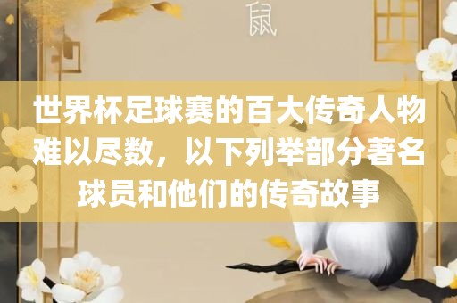 世界杯足球赛的百大传奇人物难以尽数,以下列举部分著名球员和他们的传奇故事