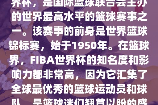 FIBA世界杯是篮球界最重要的赛事之一,它不仅促进了全球篮球运动的发展,也为球迷们带来了无与伦比的观赏体验。