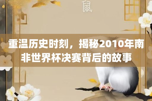 摘要:回顾历史,重温激动人心的时刻,揭秘2010年南非世界杯决赛背后的故事。这场比赛充满了激情与荣耀,涉及全球最优秀的足球队伍和球员。决赛背后的故事包括紧张激烈的比赛过程、球员们的卓越表现以及世界杯对全球足球运动的影响。重温这一历史时刻,让我们再次感受足球的魅力。