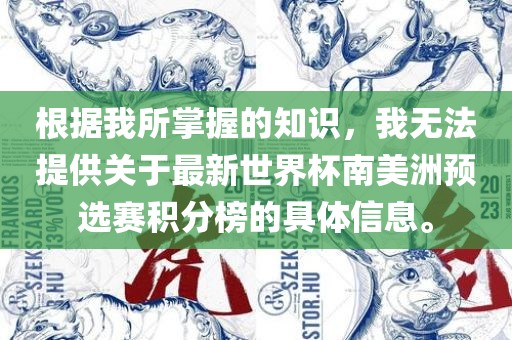 根据我所掌握的知识,我无法提供关于最新世界杯南美洲预选赛积分榜的具体信息。