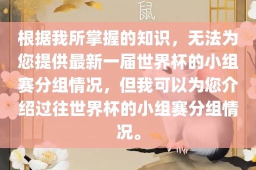 根据我所掌握的知识,无法为您提供最新一届世界杯的小组赛分组情况,但我可以为您介绍过往世界杯的小组赛分组情况。