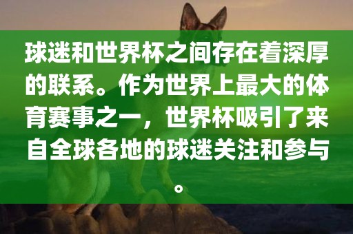 球迷和世界杯之间存在着深厚的联系。作为世界上最大的体育赛事之一,世界杯吸引了来自全球各地的球迷关注和参与。