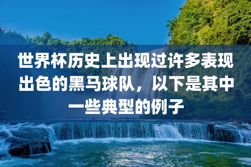 世界杯历史上多次出现黑马球队,这些球队在比赛中表现出色,成为令人瞩目的亮点。这些典型的例子包括一些在小组赛阶段表现出色的球队,以及进入淘汰赛阶段后展现出惊人实力的球队。这些球队通过出色的表现赢得了球迷和专家的赞赏,成为世界杯历史上的经典故事之一。