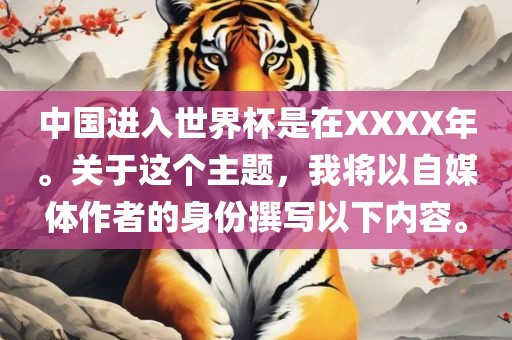中国进入世界杯是在XXXX年。关于这个主题,我将以自媒体作者的身份撰写以下内容。